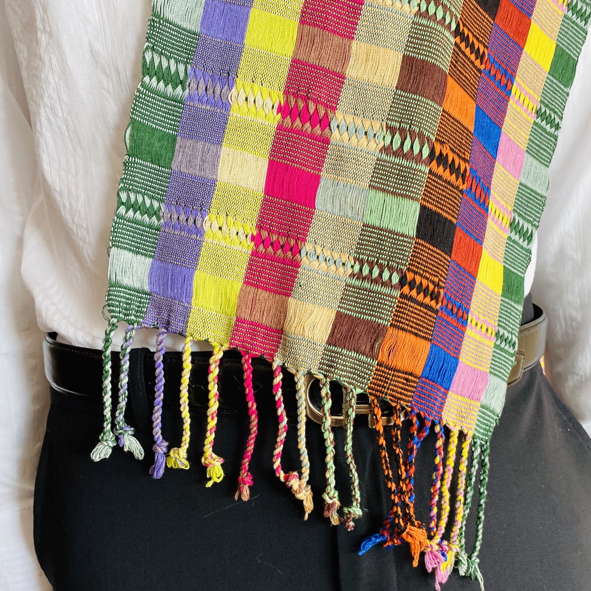 Woven in the tradition of their Mayan ancestors, female Tz'utujil artisans hand weave scarves using a back strap loom and natural dyes that pays tribute to their past and future (providing much needed income to their families). The Tz'utuhjil Mayan grand scarf compliments any ensemble for your day or evening events.