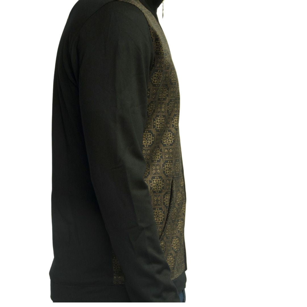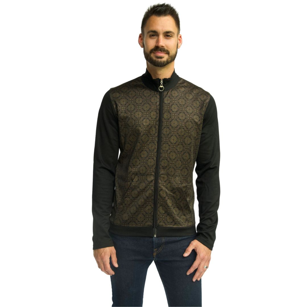 Make a Bold Entrance: Men's Black Gold Pattern Detail Athleisure Jacket